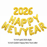 Golden Happy New Year Balloon, 16 inch New Year foil letter balloon, New Year's party decorations